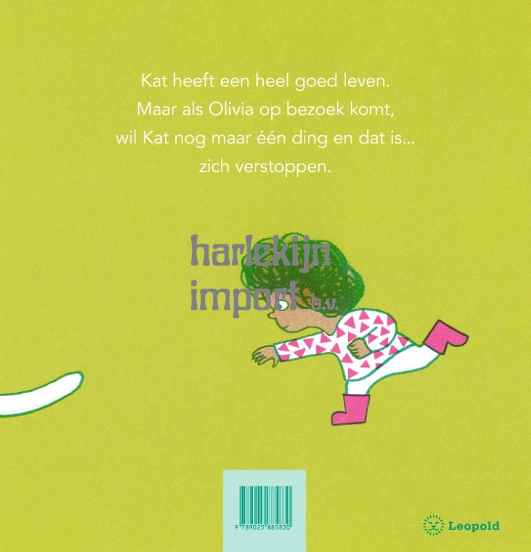 Kat heeft een goed leven, het grootste deel van de tijd. Maar als Olivia op bezoek komt, wil Kat zich alleen maar verstoppen… Poesje, poesje, waar ben je? Olivia zoekt overal. Tot ze haar slaapje moet doen. Dan komt Kat fijn op haar dekentje liggen. Heel even… want gaan Olivia’s ogen daar weer open?Zoek mee met Olivia. Zie jij Kat?