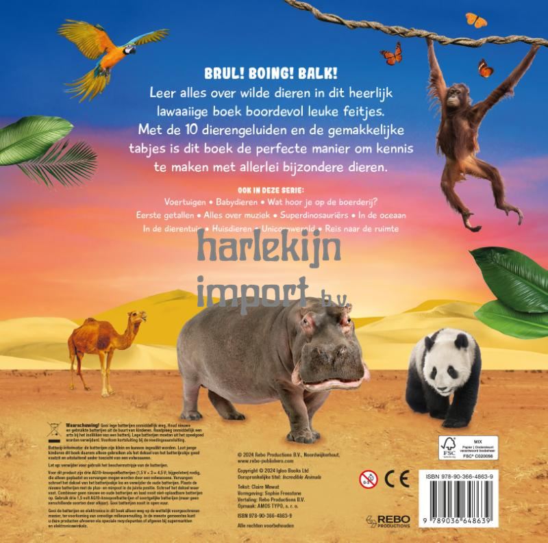 BRUL! BOING! BALK! Leer alles over wilde dieren in dit heerlijk lawaaiige boek boordevol leuke feitjes. Met de 10 dierengeluiden en de gemakkelijke tabjes is dit boek de perfecte manier om kennis te maken met allerlei bijzondere dieren.