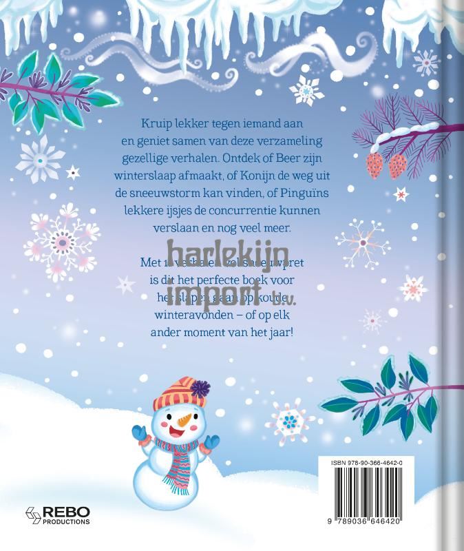 Kruip lekker tegen iemand aan en geniet samen van deze verzameling gezellige verhalen. Ontdek of Beer zijn winterslaap afmaakt, of Konijn de weg uit de sneeuwstorm kan vinden, of Pinguïns lekkere ijsjes de concurrentie kunnen verslaan en nog veel meer. Met 11 verhalen vol sneeuwpret is dit het perfecte boek voor het slapen gaan op koude winteravonden – of op elk ander moment van het jaar!