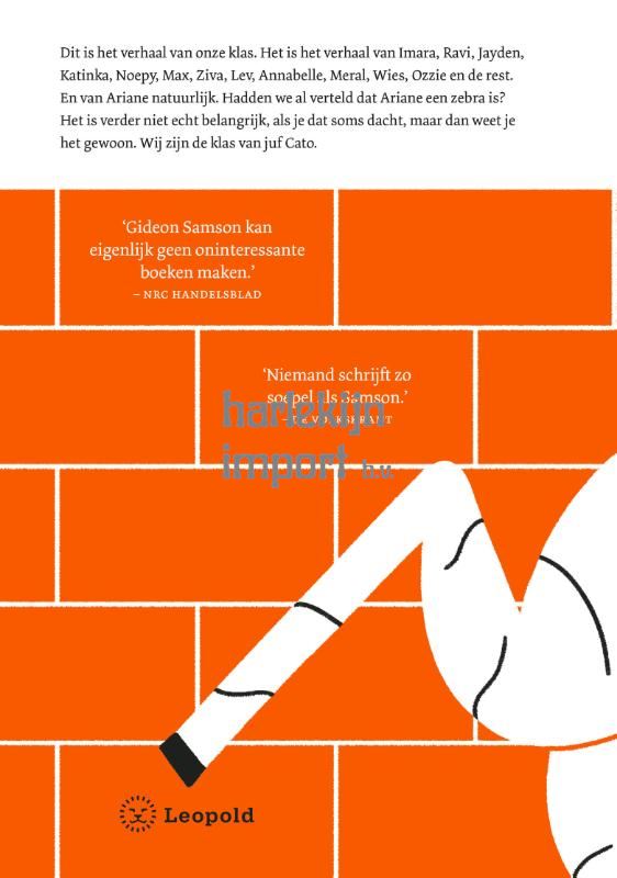 Dit is het verhaal van onze klas. Het is het verhaal van Imara, Ravi, Jayden, Katinka, Noepy, Max, Ziva, Lev, Annabelle, Meral, Wies, Ozzie en de rest. En van Ariane natuurlijk. Hadden we al verteld dat Ariane een zebra is? Het is verder niet echt belangrijk, als je dat soms dacht, maar dan weet je het gewoon. Wij zijn de klas van juf Cato.