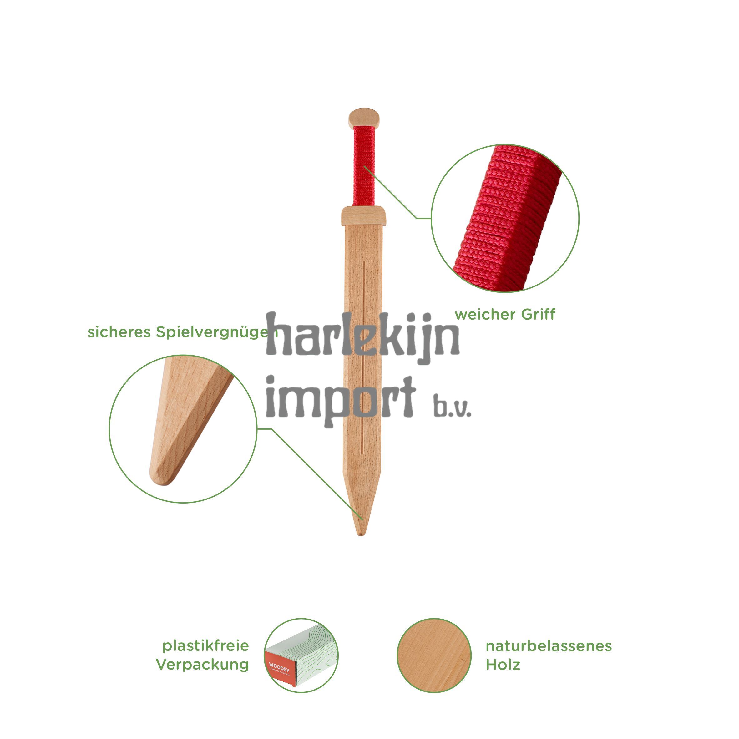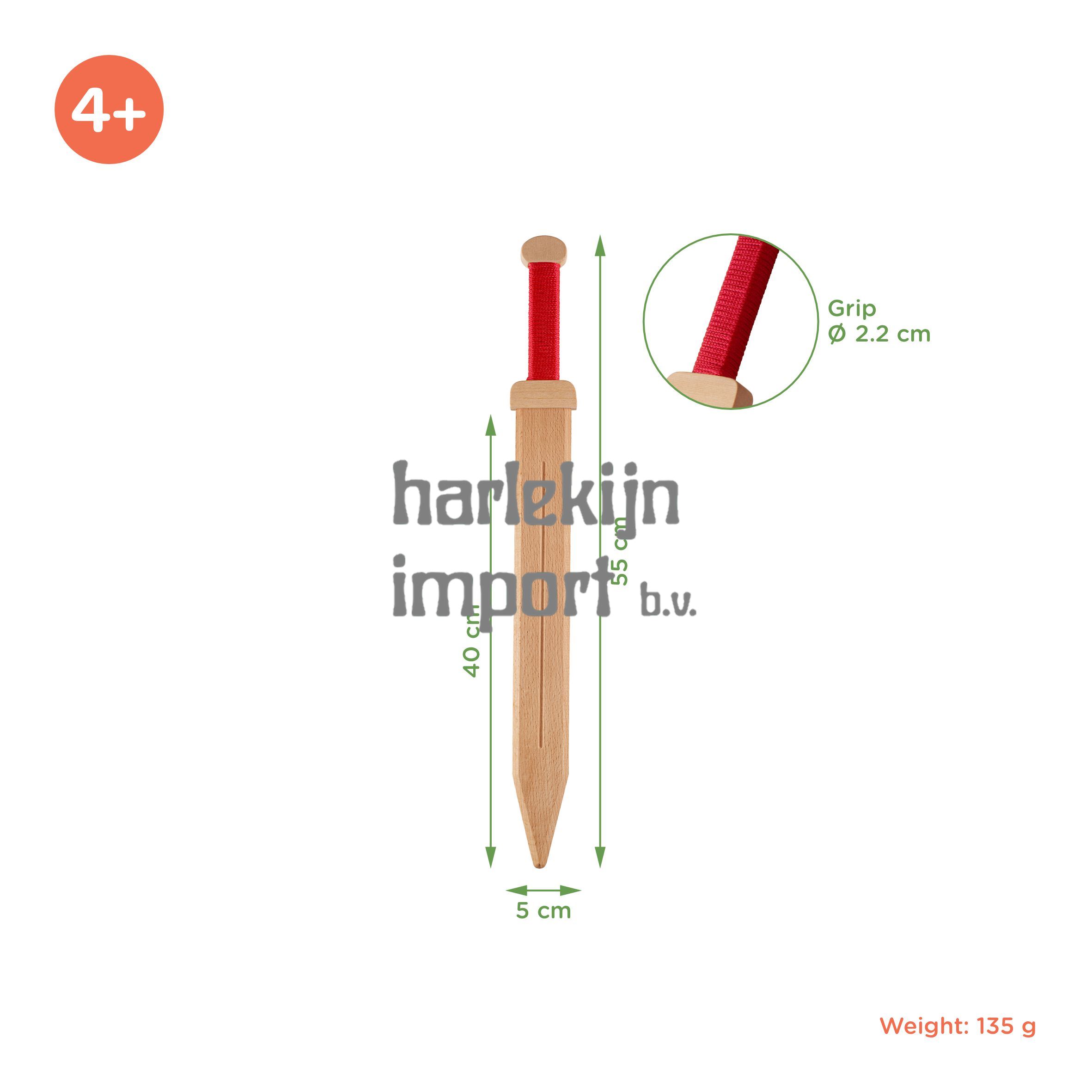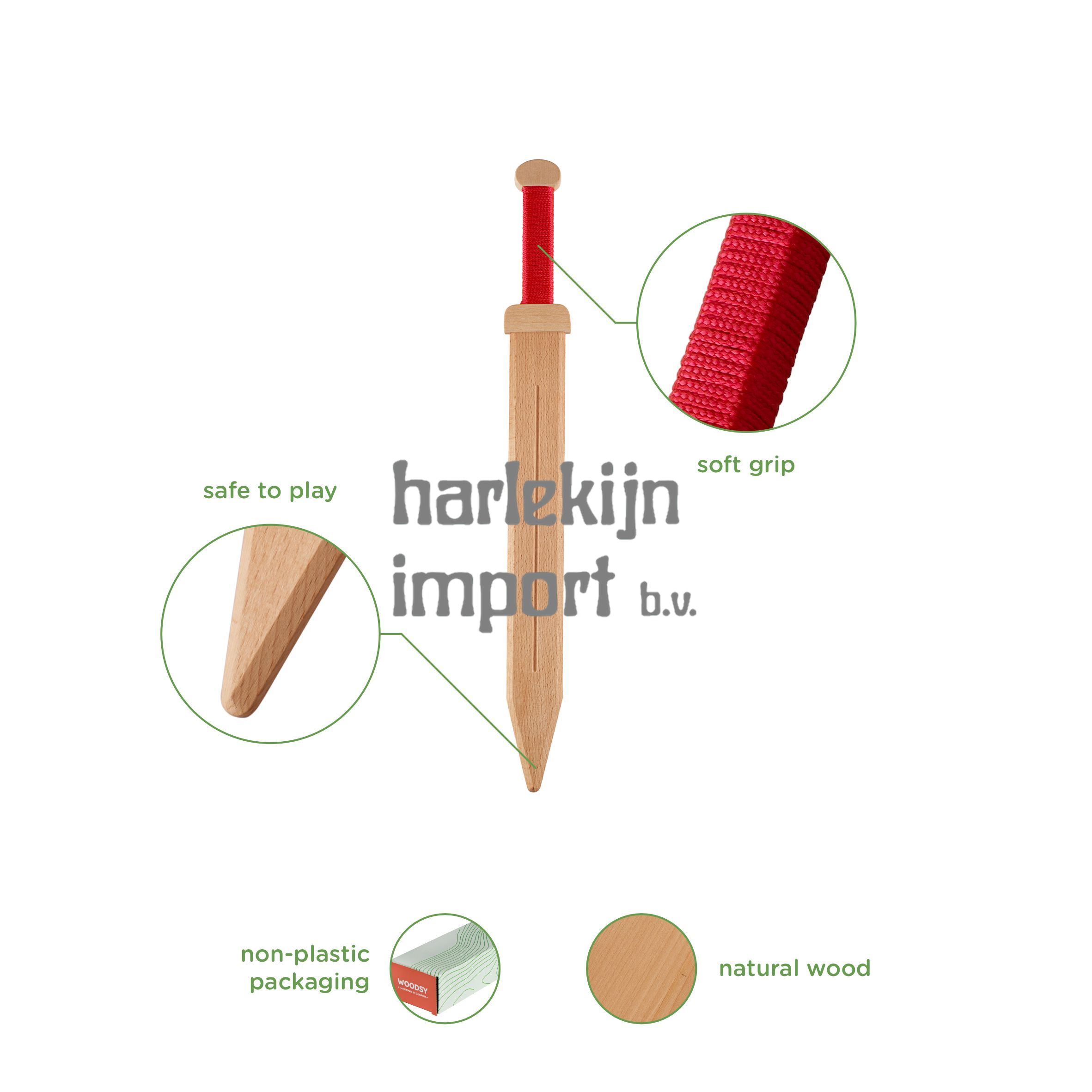Woodsy: houten Romeins zwaard Gladius p kaart, kinderen, 53,5x6x5 cm, van beukenhout.