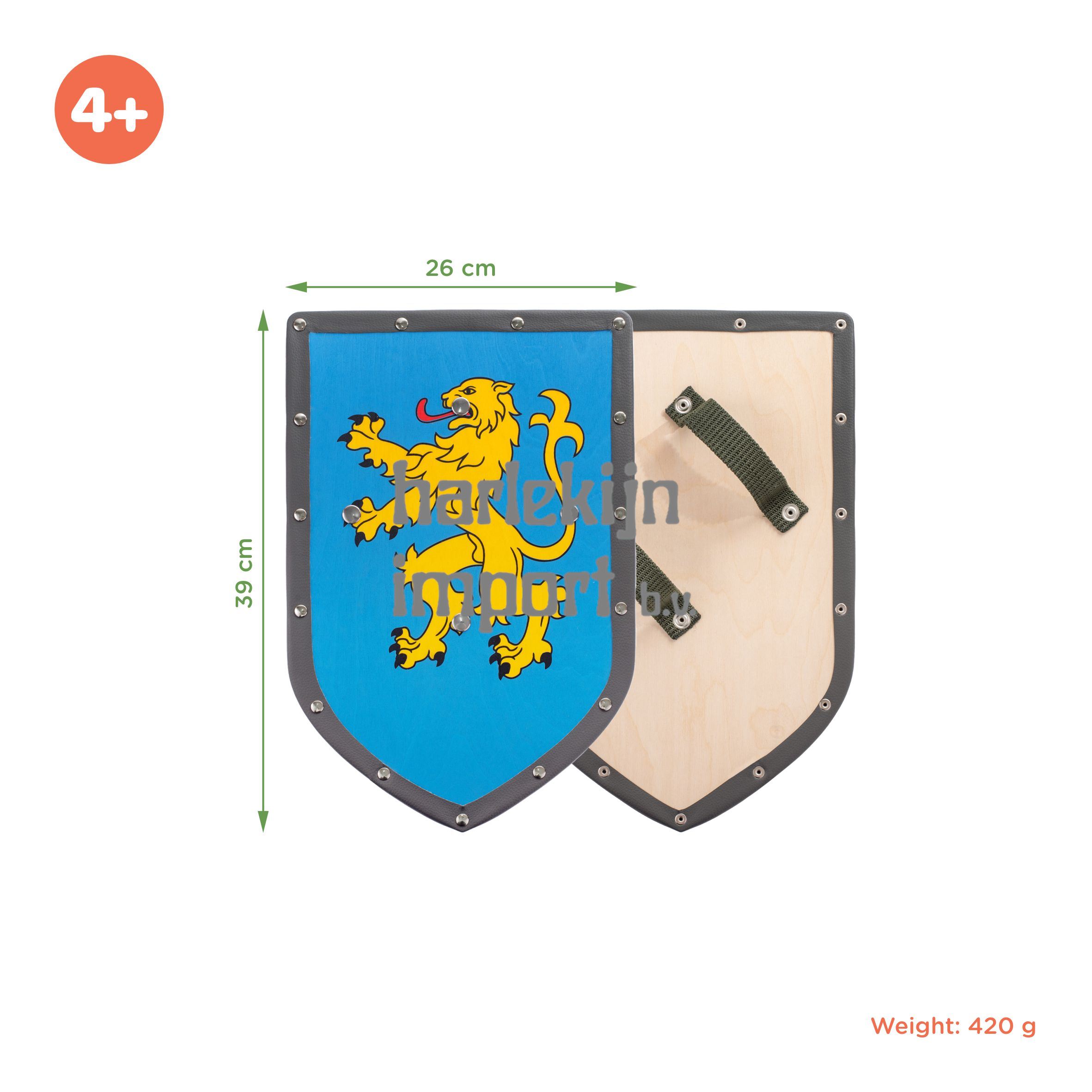 Ridderschild schuin. Leeuw/blauw.