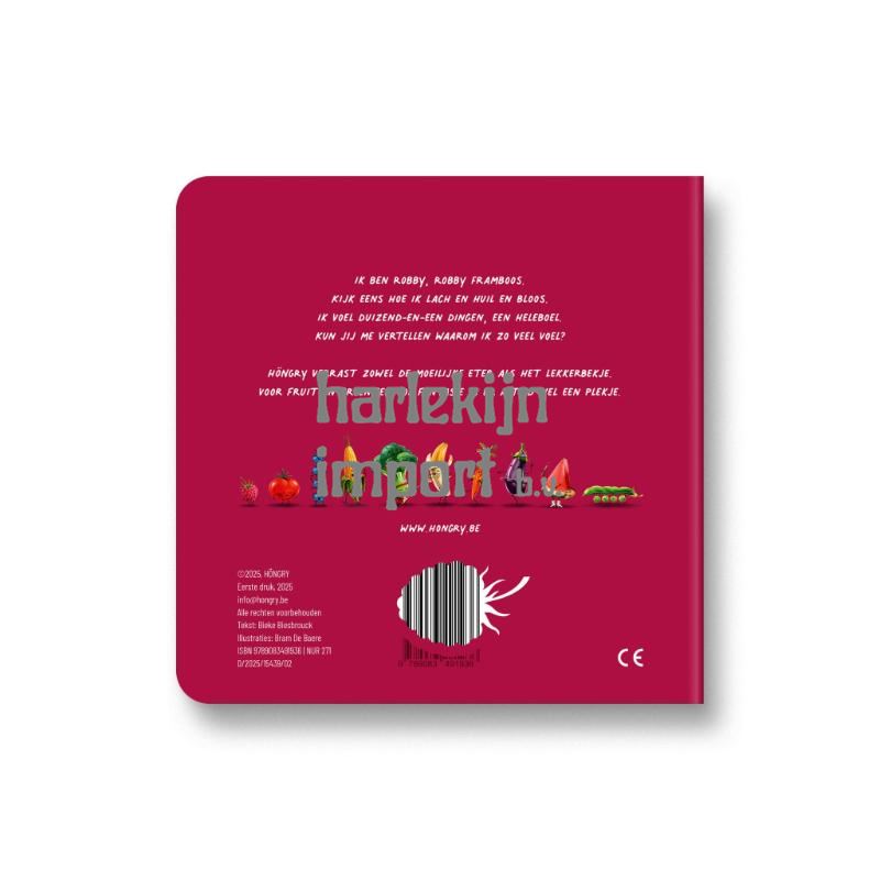 Ik ben Robby, Robby Framboos. Kijk eens hoe ik lach en huil en bloos. Ik voel duizend-en-een dingen, een heleboel. Kun jij me vertellen waarom ik zo veel voel? HÖNGRY verrast zowel de moeilijke eter als het lekkerbekje. Voor fruit en groenten vol fantasie is er altijd wel een plekje.
