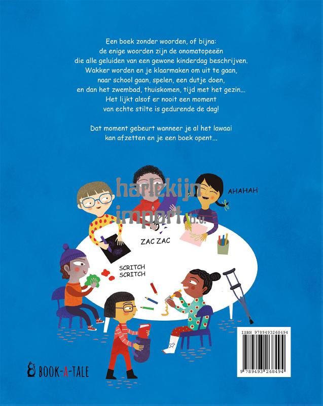 Een boek zonder woorden, of bijna: de enige woorden zijn de onomatopeeën die alle geluiden van een gewone kinderdag beschrijven. Wakker worden en je klaarmaken om uit te gaan, naar school gaan, spelen, een dutje doen, en dan het zwembad, thuiskomen, tijd met het gezin... Het lijkt alsof er nooit een moment van echte stilte is gedurende de dag! Sssst! Toch is er een bijzonder moment waarop je al het lawaai kunt uitzetten. Als dat moment aanbreekt, kom je plotseling in een hele andere wereld. Het gebeurt wanneer je een boek opent...