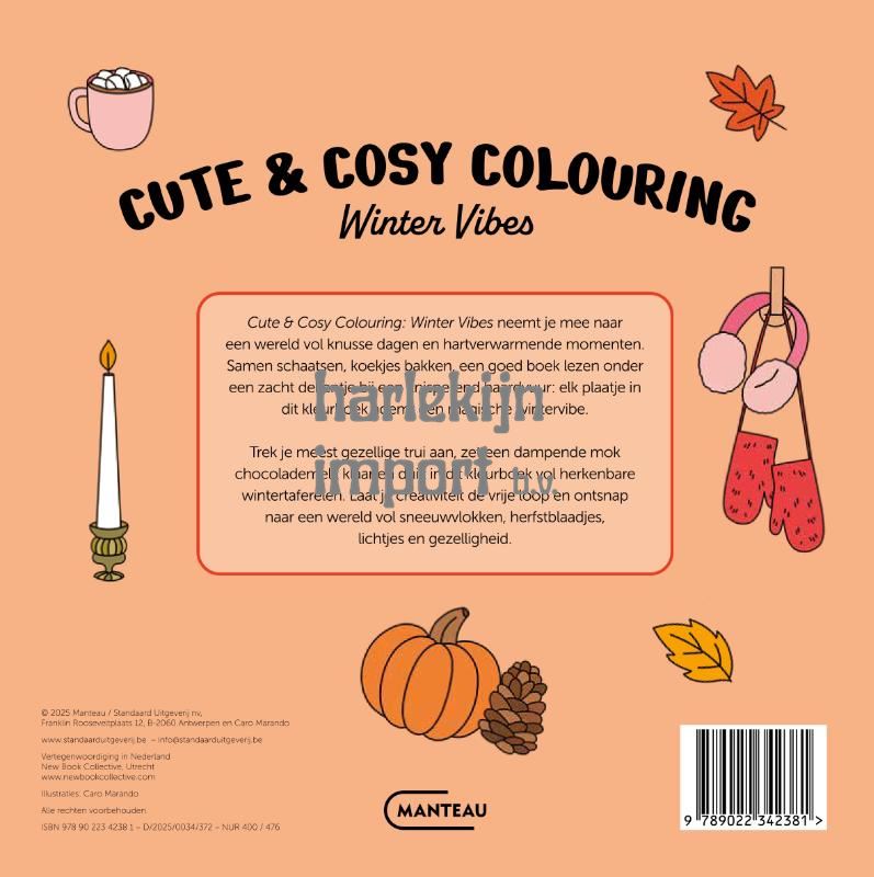 Cute & Cosy Colouring: Winter Vibes neemt je mee naar een wereld vol knusse dagen en hartverwarmende momenten. Samen schaatsen, koekjes bakken, een goed boek lezen onder een zacht dekentje bij een knisperend haardvuur: elk plaatje in dit kleurboek ademt een magische wintervibe. Trek je meest gezellige trui aan, zet een dampende mok chocolademelk klaar en duik in dit kleurboek vol herkenbare wintertaferelen. Laat je creativiteit de vrije loop en ontsnap naar een wereld vol sneeuwvlokken, herfstblaadjes, lichtjes en gezelligheid.