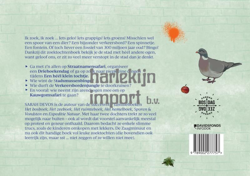 Ik zoek, ik zoek ... Iets geks! Iets grappigs! Iets groens! Misschien wel een spoor van een dier? Een bijzonder verkeersbord? Een spinnetje. Een fontein. Of toch liever een fossiel van 300 miljoen jaar oud? Bingo! Dankzij dit zoektochtenboek bekijk je de stad met héél andere ogen, want geloof ons, er zit zo veel meer verstopt in de stad dan je denkt. - Ga met z’n allen op Straatnamensafari, organiseer een Driehoekendag of ga op zoek naar piepkleine dingen tijdens Een héél klein tochtje. - Wie wint de Stadsmussenbingo? - Wie durft de Verkeersbordenjungle te doorkruisen? - En vooral: wie neemt zijn arendsogen mee om op Kauwgomsafari te gaan?