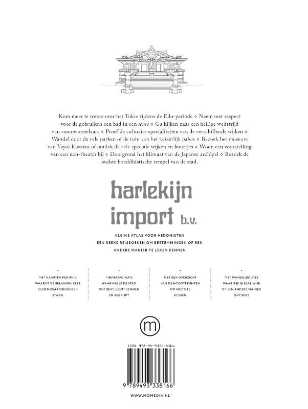 Kom meer te weten over het Tokio tijdens de Edo-periode. Neem met respect voor de gebruiken een bad in een sento. Ga kijken naar een heilige wedstrijd van sumoworstelaars. Proef de culinaire specialiteiten van de verschillende wijken. Wandel door de vele parken of de tuin van het keizerlijk paleis. Bezoek het museum van Yajoi Kusama of ontdek de vele speciale wijken en buurtjes. Woon een voorstelling van een noh-theater bij. Doorgrond het klimaat van de Japanse archipel. Bezoek de oudste boeddhistische tempel van de stad. Kleine atlas voor hedonisten is een reeks reisboeken om bestemmingen op een andere manier te leren kennen. Met kaarten per streek waarop de belangrijkste bezienswaardigheden staan. Themapagina’s waarmee je het land ontdekt, leert kennen en begrijpt. Met een overzicht van de hoogtepunten om niets te missen. Met uitstapjes waarmee je elke streek op een andere manier ontdekt.