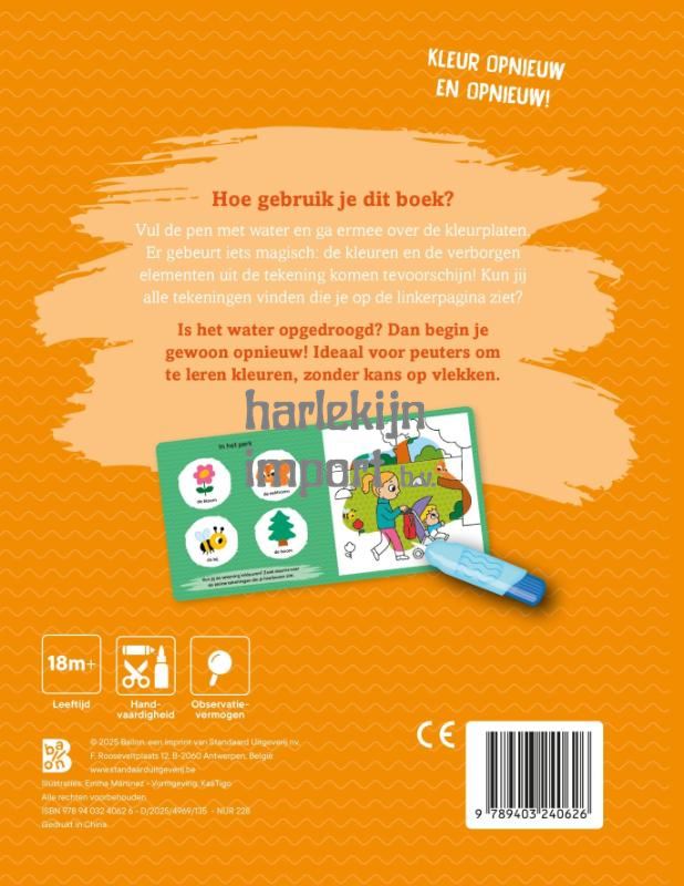 Het populaire concept 'Kleuren met water' bestaat nu ook voor de allerkleinsten rond het thema Mijn dag, met een aangepaste pen en in kartonboekformaat. Peuters vanaf 18 maanden kunnen zo leren kleuren zonder vlekken te maken. Door de aangepaste zoekopdrachten leren ze bovendien heel wat bij.