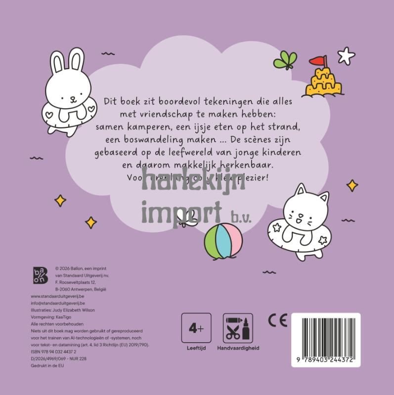 De cosy colouringtrend is er nu ook voor de kleintjes! Dit boek staat boordevol tekeningen die alles met vriendschap te maken hebben: samen kamperen, een ijsje eten op het strand, een boswandeling maken ... De scènes zijn gebaseerd op de leefwereld van jonge kinderen en daarom makkelijk herkenbaar. Voor urenlang cosy kleurplezier!