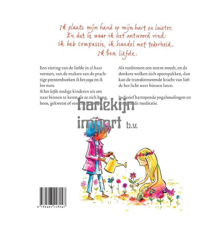 Ik plaats mijn hand op mijn hart en luister. En dat is waar ik het antwoord vind: ik heb compassie, ik handel met tederheid, ik ben liefde. Een nieuw boek in de succesvolle Ik ben-reeks van het bestseller-duo! Van de makers van de prachtige prentenboeken Ik ben yoga en Ik ben mens, komt nu een viering van de liefde in al haar vormen. 'Ik ben liefde' nodigt kinderen uit om naar binnen te keren als ze zich bang, boos, gekwetst of verdrietig voelen. Als vanbinnen een storm woedt, en de donkere wolken zich opeenpakken, dan kan de transformerende kracht van liefde het licht weer naar binnen laten.