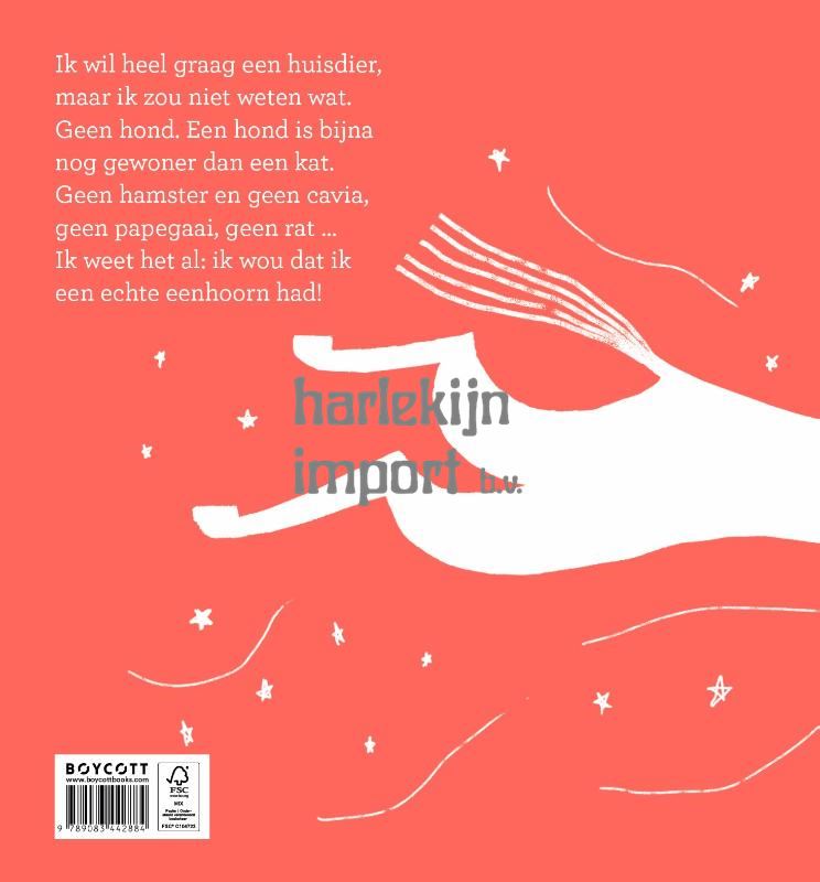 Heb je je ooit afgevraagd hoe het zou zijn om een eenhoorn als huisdier te hebben? In tegenstelling tot trollen zijn eenhoorns veel minder chagrijnig, en ze zijn ook nog eens een stuk handzamer dan reuzen. Ze eten alleen ijs als ontbijt én... elke keer dat je boos wordt, geven ze je een suikerspin! In dit humoristische, energiek rijmende verhaal ervaart een klein meisje hoe het leven met een magisch huisdier eruit zou zien – van sterrenstof strooien over chagrijnige ouders tot op een regenboog naar de voetbaltraining glijden. Dit boek viert de magie van eenhoorns, op een manier die zelfs kinderen aanspreekt die allergisch zijn voor roze!