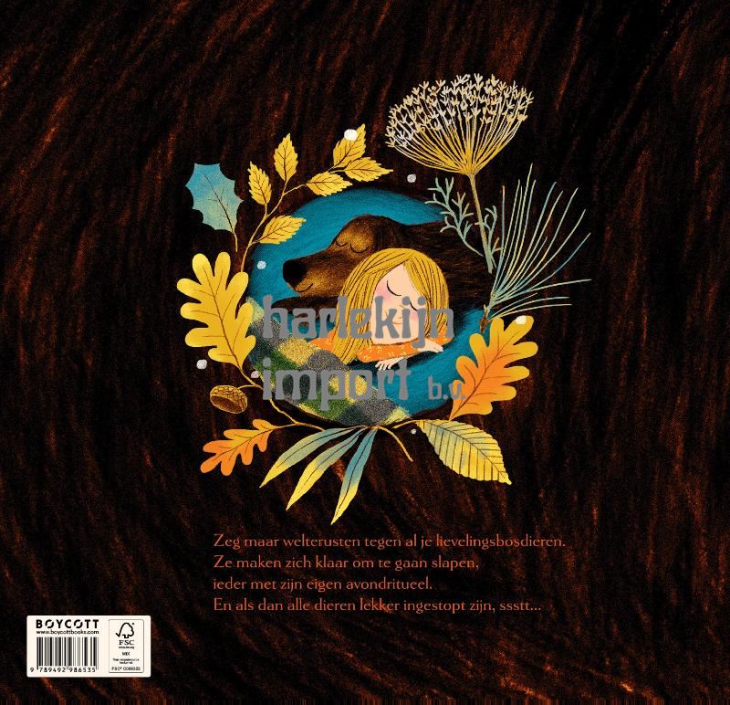 Loop stilletjes door het bos en ontdek de slaaproutine van heel wat bosdieren. Kijk mee hoe elk dier zijn warme en gezellige nest in de nacht opzoekt, van het zachte bladerdek van het hert tot het holletje van de eekhoorn in de boom. Terwijl je zelf een nestje maakt in je eigen zachte bedje doezel je weg met rijmpjes over het bos. De mooie woorden van Karen Jameson en de oogstrelende illustraties van Marc Boutavant zijn zinnenprikkelend en verwelkomen op poëtische wijze de aanstaande nacht.