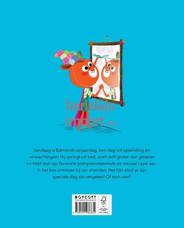 Vandaag is Edmonds verjaardag, een dag vol opwinding en verwachtingen! Hij springt uit bed, voelt zich groter dan gisteren en zet snel zijn favoriete pomponnetjesmuts op. In het bos ontmoet hij zijn vrienden. Het lijkt alsof ze zijn speciale dag zijn vergeten! Gelukkig wachten zijn vrienden thuis op hem met een verrassingsfeestje, compleet met taart en versieringen. 'Edmond is jarig' is het derde boek in de reeks Edmond en zijn vrienden en is een ontroerend verhaal over vriendschap, zelfontdekking en waardering.