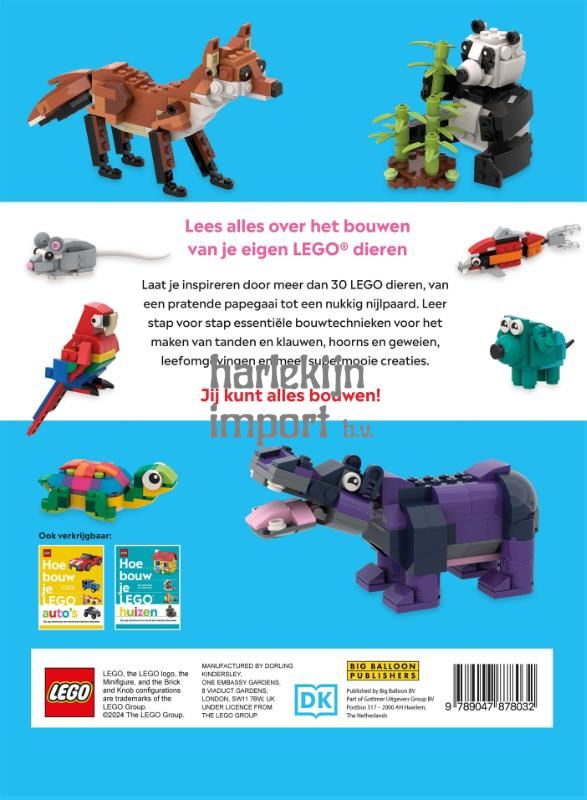 Van een brullende leeuw tot een kleurrijke papegaai of een nukkig nijlpaard: Het nieuwste LEGO®-boek: 'Hoe bouw je LEGO® dieren' laat zien hoe allerlei dieren met LEGO®-stenen tot leven kunnen worden gebracht. Laat je inspireren door de meer dan 30 LEGO®-dieren en leer stap voor stap essentiële bouwtechnieken voor het maken van tanden en klauwen, hoorns en geweien, leefomgevingen en meer supermooie creaties. Jij kunt alles bouwen! Het LEGO®-avontuur begint zodra je als kind je allereerste LEGO®-steentje vastpakt. Met de vrolijk gekleurde bouwstenen kunnen zowel kinderen als volwassenen een eigen wereld creëren. Of je een eigen stad wilt bouwen, de snelste voertuigen of de mooiste gebouwen, met LEGO® kan het allemaal. Dit creatieve en duurzame speelgoed is niet meer weg te denken! Bekijk ook de andere boeken in de Hoe bouw je-reeks: 'Hoe bouw je LEGO® huizen' en 'Hoe bouw je LEGO® auto's'. Nóg meer praktische bouwadviezen van ervaren LEGO®-bouwers, dat betekent kleurrijke avonturen en creatief plezier voor alle fans.