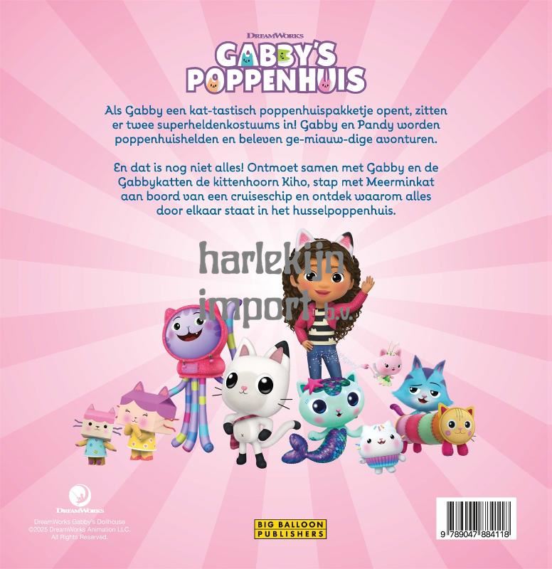 <p>In het dikke Gabby's Poppenhuis voorleesboek 'Kat-tastische helden en andere verhalen', lees je vier spannende verhalen over Gabby en haar kattenvriendjes. Als Gabby een kat-tastisch poppenhuispakketje opent, zitten er twee superheldenkostuums in! Gabby en Panda worden poppenhuishelden en beleven ge-miauw-dige avonturen. En dat is nog niet alles! Ontmoet samen met Gabby en de Gabbykatten de kittenhoorn Kiho, stap met Meerminkat aan boord van een cruiseschip en ontdek waarom alles door elkaar staat in het husselpoppenhuis.<br><br><br>Gabby's Poppenhuis, een geliefde Netflix-serie voor peuters, biedt een boeiende mix van live-action en animatie. Volg Gabby en haar magische poppenhuis door een kleurrijke omgeving gevuld met sprekende poppen en speelgoeddieren. Deze serie smelt fantasie samen met educatieve elementen, waardoor kinderen worden aangemoedigd hun verbeelding te gebruiken en probleemoplossend te denken.<br><br>De verhalen in de bundel 'Kat-tastische helden en andere verhalen' kun je voorlezen vanaf 4 jaar. Bekijk ook onze andere kinderboeken van Gabby's Poppenhuis: 'Glitterfeest met Gabby', 'Gabby's slaapfeestje' en 'De Sprookjestuin van Kitty Fee'.</p>