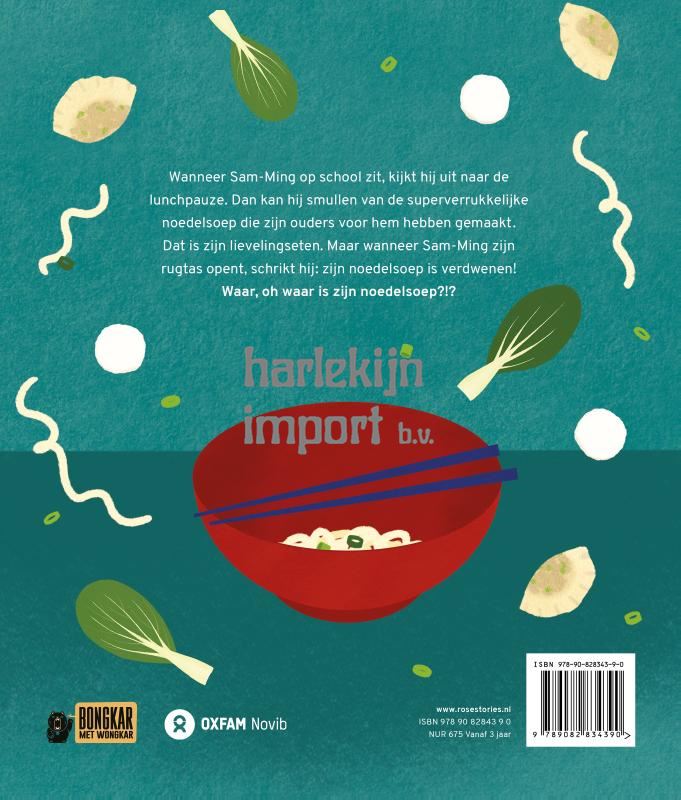 Wanneer Sam-Ming op school zit, kijkt hij uit naar de lunchpauze. Dan kan hij smullen van de superverrukkelijke noedelsoep die zijn ouders voor hem hebben gemaakt. Dat is zijn lievelingseten. Maar wanneer Sam-Ming zijn rugtas opent, schrikt hij: zijn noedelsoep is weg! Waar, oh waar is zijn noedelsoep?!?
