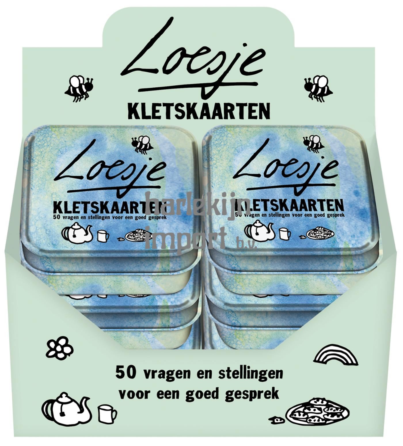 Met de kletskaarten van Loesje heb je altijd vijftig prikkelende vragen en stellingen bij de hand voor een goed gesprek of een stevige discussie. Ga de diepte in over persoonlijke en wereldse thema’s en ontdek nieuwe inzichten bij jezelf en anderen!