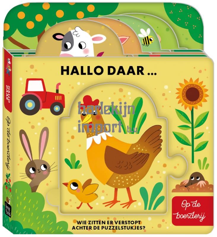 Kiekeboe! Wie zit daar verstopt? Haal één voor één de vijf stevige puzzelstukjes eruit en ontdek welk boerderijdier zich verstopt. Leg daarna alle stukjes aan elkaar en zie hoe de dieren vrolijk in een lange rij huppelen. Perfect om te lezen, spelen én puzzelen!