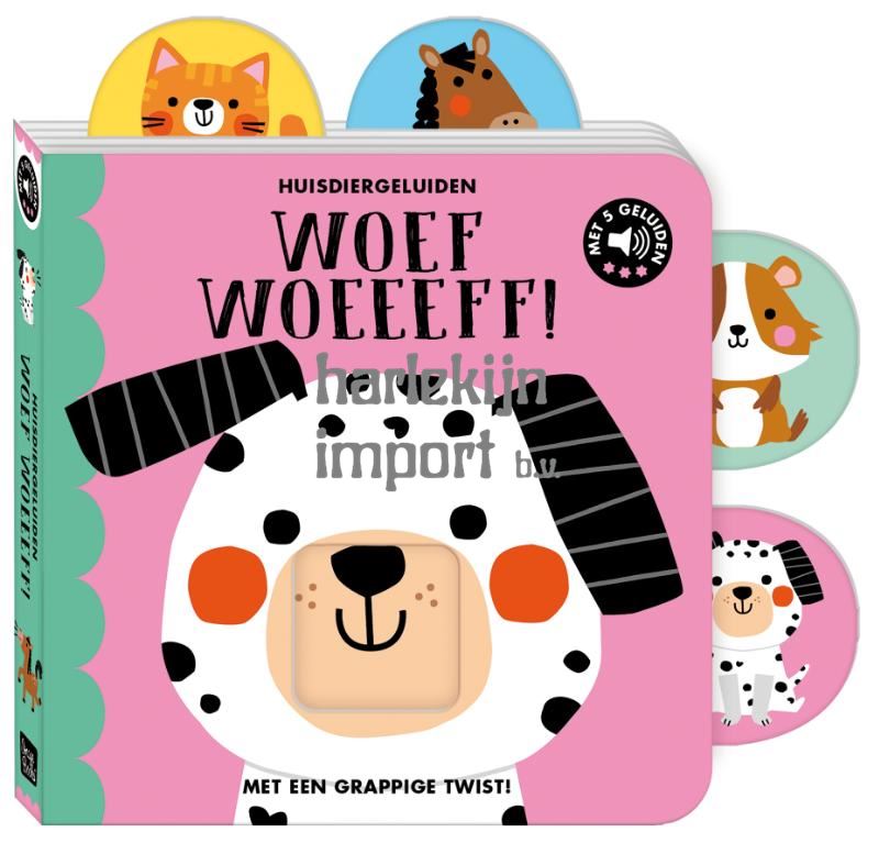 Trek aan de tabs en een knotsgek avontuur vol dierengeluiden begint! Zeg hallo tegen hondje en zijn vriendjes en doe vrolijk mee met hun woef woef, miauw miauw en piep piep. Een interactief voorleesboek vol humor en geluid, met een verrassend einde dat elk kind laat rollen van het lachen!