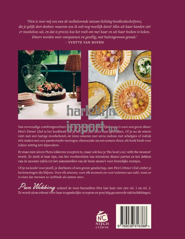 ‘Pien is voor mij een van dé veelbelovende nieuwe-lichting-kookboekschrijvers, die je gelijk doet denken: waarom zou ik ooit nog moeilijk doen? Alles uit haar handen ziet er moeiteloos uit, en dat is precies hoe het voelt om met haar en uit haar boeken te koken. Diners worden weer ontspannen en gezellig, met buitengewoon gemak.’ – Yvette van Boven Van eenvoudige comfortgerechten voor op de bank tot feestelijke menu’s voor een groot diner: Pien’s Dinner Club is het kookboek dat je het hele jaar door kunt gebruiken. Of je nu de winter viert met een hartige stoofschotel, de lente omarmt met arroz meloso met schelpjes of indruk wilt maken met een passievrucht-meringuecheesecake na een zomers diner, dit boek biedt voor iedere setting iets bijzonders. Hierin staan niet alleen Piens lekkerste recepten, maar ook hoe je ‘the host(ess) with the mostest’ wordt. Ze deelt al haar tips, van het voorbereiden van stressloze dinner parties en het dekken van de mooiste tafels tot het samenstellen van de beste menu’s voor feestelijke etentjes. Of je nu kookt voor jezelf, je dierbaren of een groter gezelschap, met Pien’s Dinner Club creëer je herinneringen die blijven. Voor elk seizoen, voor elk moment en voor iedereen aan tafel, want er is niets dat mensen zo verbindt als samen eten. Eerder verschenen Pien laat haar eten zien en Pien laat haar eten zien vol. 2.