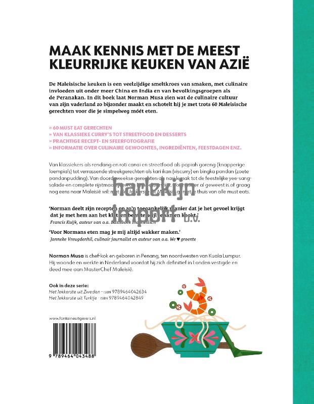 Klassiekers en streekgerechten uit de meest veelzijdige keuken van Azië De populariteit van Maleisie als vakantieland neemt toe, maar nog maar weinig mensen kennen de authentieke Maleisische keuken. Die keuken is een culinaire smeltkroes van veelzijdige smaken, beinvloed door onder meer China, India en de Peranakan. In Het lekkerste uit Maleisië schotelt chef Norman Musa ons met trots 60 Maleisische gerechten voor die je simpelweg moet eten. * elk recept gefotografeerd * van klassieke curry's tot streetfood en desserts* in de culinaire reeks Het lekkerste uit...Van klassiekers als nasi lemak en roti canai, streetfood snacks als popiah goreng (knapperige springrolls) tot verrassende streekgerechten als kari ikan (viscurry), en bingka pandan (zoete pandanpudding). Voor doordeweekse dagen, etentjes met familie en vrienden, of feestdagen als Eid-al-Fitr en Chinees Nieuwjaar. Met Het lekkerste uit Maleisië, waarin smakelijke recepten worden afgewisseld met prachtige sfeerfotografie, geniet je thuis van alle must eats.