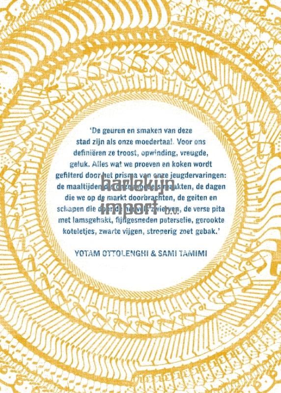 'De geuren en smaken van deze stad zijn als onze moedertaal. Voor ons definiëren ze troost, opwinding, vreugde, geluk. Alles wat we proeven en koken wordt gefilterd door het prisma van onze jeugdervaringen: de maaltijden die onze moeders maakten, de dagen die we opde markt doorbrachten, de geiten en schapen die door de heuvels zwierven, de verse pita met lamsgehakt, fijngesneden peterselie, gerookte koteletjes, zwarte vijgen, stroperig zoet gebak.;