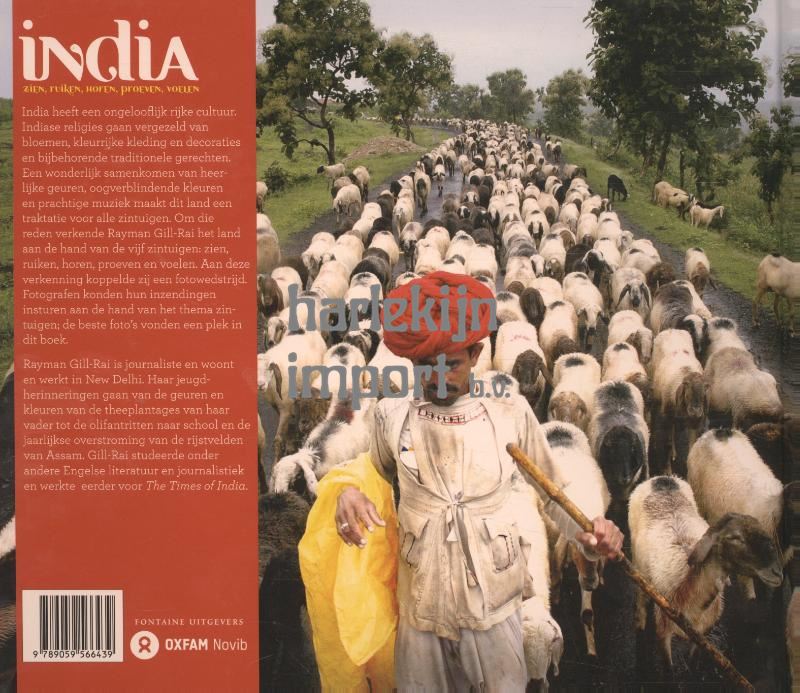 India heeft een ongelooflijk rijke cultuur. Indiase religies gaan vergezeld van bloemen, kleurrijke kleding en decoraties en bijbehorende traditionele gerechten. Een wonderlijk samenkomen van heerlijke geuren, oogverblindende kleuren en prachtige muziek maakt dit land een traktatie voor alle zintuigen. Om die reden verkende Rayman Gill-Rai het land aan de hand van de vijf zintuigen: zien, ruiken, horen, tast en smaak. Aan deze verkenning koppelde ze een fotowedstrijd. Fotografen konden hun inzendingen insturen aan de hand van het thema zintuigen - de beste foto's vonden een plek in dit boek.