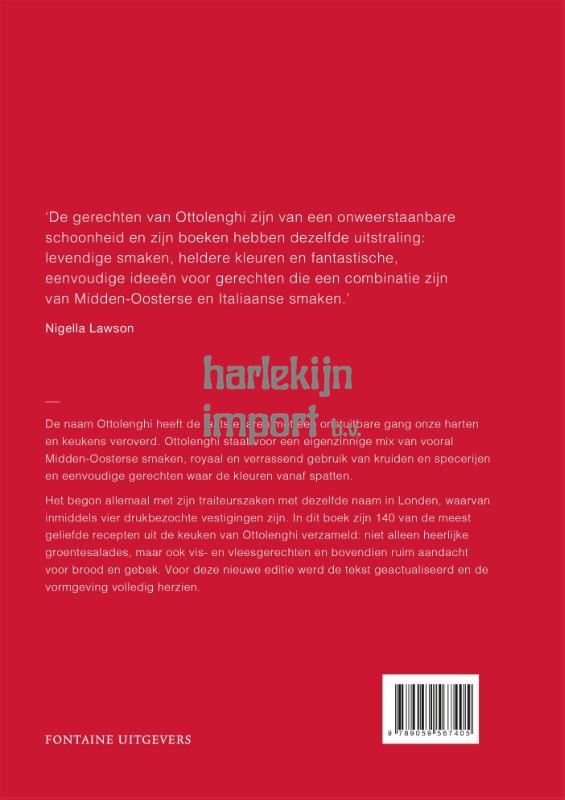 De naam Ottolenghi heeft de laatste jaren met een onstuitbare gang onze harten en keukens veroverd. Ottolenghi staat voor een eigenzinnige mix van vooral Midden-Oosterse smaken, royaal en verrassend gebruik van kruiden en specerijen en eenvoudige gerechten waar de kleuren vanaf spatten. Het begon allemaal met zijn traiteurszaken met dezelfde naam in Londen, waarvan inmiddels vier drukbezochte vestigingen zijn. In dit boek zijn 140 van de meest geliefde recepten uit de keuken van Ottolenghi verzameld: niet alleen heerlijke groentesalades, maar ook vis- en vleesgerechten en bovendien ruim aandacht voor brood en gebak. Voor deze nieuwe editie werd de tekst geactualiseerd en de vormgeving volledig herzien.