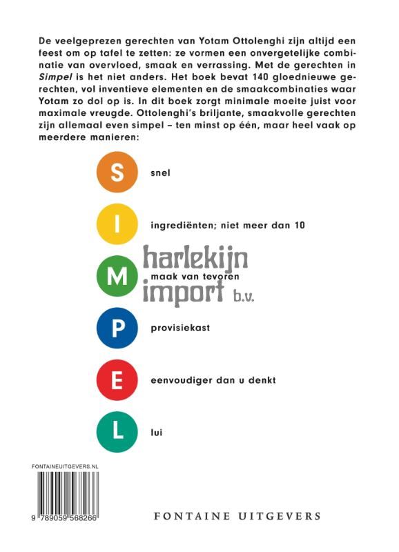 Eenvoud? Het lijkt onwaarschijnlijk bij een kookboek van Yotam Ottolenghi, maar zijn nieuwe kookboek SIMPEL staat vol met eenvoudig te bereiden gerechten, zonder af te doen aan de typische Ottolenghi-smaak of verrassing. Van avocadoboter op toast met tomatensalsa, heerlijke saffraan-mosterdscones met cheddar en piccalilly tot burrata met gegrilde druiven en basilicum of een bevroren munt-en-pistache-chocoladecake.