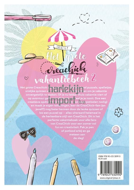 'Het grote Creachick vakantieboek 2' zit boordevol puzzels, spelletjes, vrolijke quizzen en toffe creatieve opdrachten om je vakantie onvergetelijk te maken. Of je nu lekker thuis vakantie viert of op avontuur gaat, met dit boek verveel je je nooit. Doe een creatieve opdracht (je hebt alleen een paar potloden nodig) en maak je eigen tekeningen, leer de CreaChick-fam (en jezelf!) nog beter kennen door de leuke quizzen of los een puzzel op – alles uiteraard helemaal in de herkenbare stijl van CreaChick. Dit is het perfecte vakantieboek voor alle fans van CreaChick voor een zomer vol fun en creativiteit. Pak je pen of potlood erbij en ga meteen aan de slag!