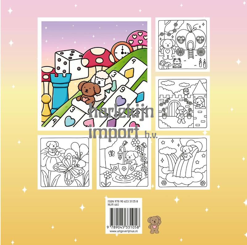 Welcome to the Magical World of Club Kokoro! Step into a world of wonder, friendship, and imagination with Magical Moments, a heartwarming coloring book from Club Kokoro featuring 40 dreamy pages full of adventure. Join two inseparable friends as they journey through enchanted forests, slide down rainbows, and float on magical umbrella’s. Every page captures a whimsical moment of joy, curiosity, and cozy companionship, inviting you to color their world and make it your own. Tip: When using alcohol markers, place a sheet of paper (or this book’s flap) behind the page to keep the next design clean. Welkom in de magische wereld van Club Kokoro! Waan je met Magical Moments in een universum vol verwondering, vriendschap en verbeelding en kleur je een weg door veertig dromerige illustraties. Ga in dit hartverwarmende kleurboek op avontuur met twee onafscheidelijke vrienden terwijl ze door betoverde bossen reizen, van regenbogen glijden en op magische paraplu’s rondzweven. Elke kleurplaat legt een vrolijk, nieuwsgierig of gezellig moment vast, en aan jou de eer om hun wereld van kleur te voorzien! Tip: Leg bij gebruik van alcoholmarkers een vel papier (of flap van dit boek) achter de kleurplaat om de volgende plaat te beschermen.