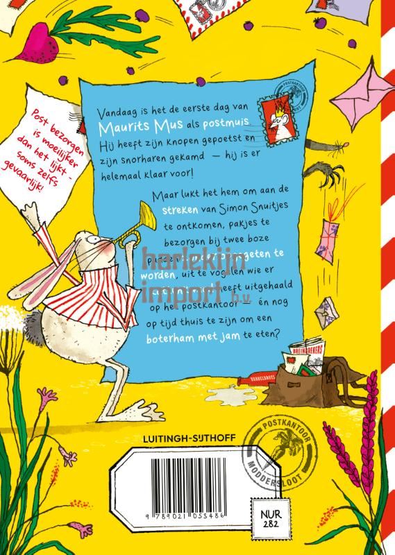 Maurits Mus - Eersteklas kattenkwaad van Claire Powell is het eerste deel van een geestige serie over een jonge muis die wel wat zelfvertrouwen kan gebruiken. Dit boek, dat sprankelend is vertaald door de veelbekroonde auteur Floortje Zwigtman, bevat veel vrolijke illustraties in een rode steunkleur. Maurits Mus (eigenlijk heet hij Maurits Muis, maar dat is een lang verhaal - iets met een klodder inkt) komt uit een familie van postmuizen. Zijn oudtante Ada was de Beste Postmuis Die Ooit Leefde. Nu is het aan Maurits om haar op te volgen. Maar op zijn eerste dag gaat er van alles mis. Hij raakt verdwaald in een ondergronds doolhof (en wordt gered door een maf konijn) en belandt tussen twee ruziƫnde paddenburen. Post bezorgen is helemaal niet zo makkelijk - soms zelfs gevaarlijk. Lukt het hem om al zijn post te bezorgen? En belangrijker: wordt hij net zo'n goede postmuis als zijn oudtante Ada? Deze serie is geschikt voor kinderen die hun eerste leesmeters hebben gemaakt en op zoek zijn naar een fijn en grappig avontuur om hun leesplezier verder aan te wakkeren.