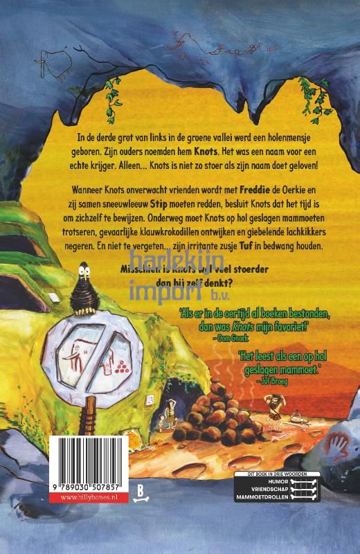 In de derde grot van links in de groene vallei, werd een holenmensje geboren. Zijn ouders noemden hem Knots. Het was een naam voor een echte krijger. Alleen… Knots is niet zo stoer als zijn naam doet geloven! Wanneer Knots onverwachts vrienden wordt Freddie de oerkie en wanneer blijkt dat sneeuwleeuw Stip zijn hulp nodig heeft, besluit hij dat het tijd is om zichzelf te bewijzen in de wereld buiten de groene vallei. Hiervoor moet hij op hol geslagen mammoeten, klauwkrokodillen en giebelende lachkikkers te trotseren… Én zijn irritante zusje Tuf in bedwang houden! Is hij stoerder dan hij zelf dacht?