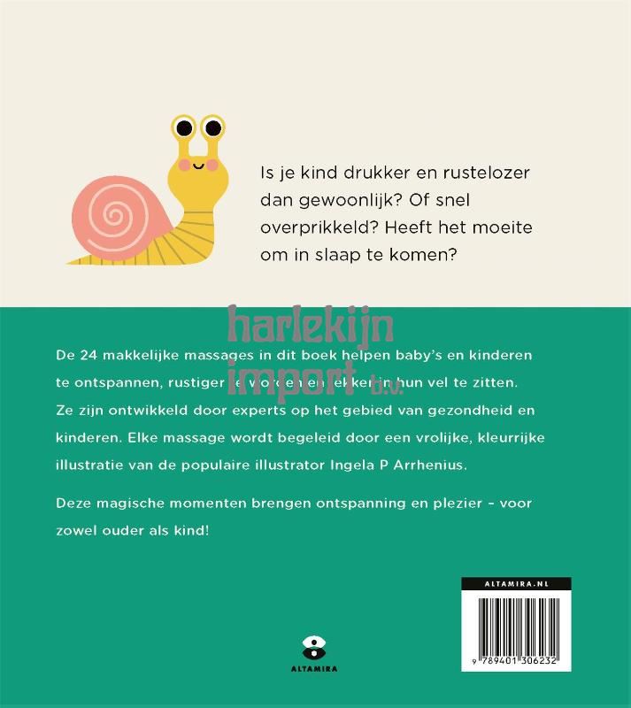 Laat je kind kennismaken met een makkelijke manier om te ontprikkelen met 'Magische massages' van Ingela P Arrhenius. In dit handzame boekje ontdek je 24 makkelijke massages die baby's en kinderen kunnen helpen ontspannen, rustiger te worden en lekker in hun vel te zitten. Bij elke massage staat een kleurrijke en schattige illustratie van Ingela P Arrhenius. Er zijn massages die je samen met je kind kunt doen en massages die kinderen zelf kunnen doen - deze laatste massages zijn gemarkeerd met een icoontje. Met 'Magische massages' leren kinderen gemakkelijk te ontspannen en rustig te worden na overprikkeling of wanneer ze zich druk of rusteloos voelen. De massages bieden elk kind een fijn moment van ontspanning en plezier.
