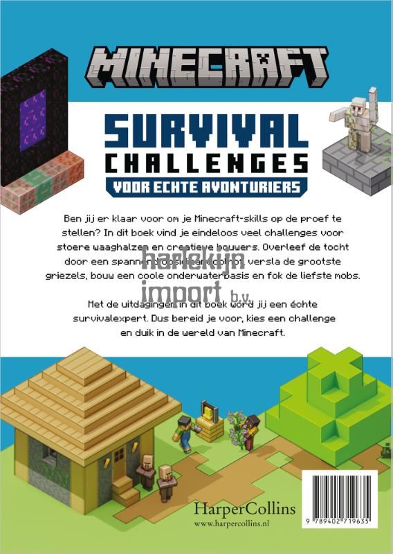 Daag jezelf en je vrienden uit met de gekste Minecraft-uitdagingen uit Minecraft Survival Challenges. Perfect voor echte avonturiers! Ben jij er klaar voor om je Minecraft-skills op de proef te stellen? In dit boek vind je eindeloos veel challenges voor stoere waaghalzen en creatieve bouwers. Overleef de tocht door een spannend obsidiaandoolhof, versla de grootste griezels, bouw een coole onderwaterbasis en fok de liefste mobs. Met de uitdagingen in dit boek word jij een échte survivalexpert. Dus bereid je voor, kies een challenge en duik in de wereld van Minecraft.