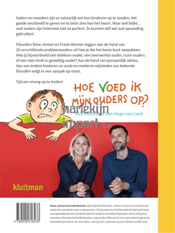 Hoe voed ik mijn ouders op? is een bijzondere samenwerking tussen filosofen Stine Jensen en Frank Meester. Eerder toerden zij al samen langs Nederlandse zalen met hun filosofische theater lezing 'Het Opvoedcircus' en zij schreven samen De Opvoeders. Wat filosofie de schipperende ouder kan leren. Nu komen ze met een humoristisch én filosofisch kinderboek over dit thema. Allerlei probleemouders komen aan bod, zoals de telefoonouder, de overwerkte ouder, de te-jong-gekleed-ouder, de ruzie-ouder, de mijn-kind-is-hyper-intelligent-ouder en zo nog 15 onuitstaanbare vaders en moeders die wel een beetje opvoeding kunnen gebruiken! Elk hoofdstuk begint met het probleem van een kind, dat vervolgens tips krijgt van andere kinderen én van filosofen Stine en Frank (die zelf overigens ook geen perfecte ouders zijn...) Leuk en leerzaam voor ouder en kind! Kijk op www.kluitman.nl voor een gratis lesbrief over dit boek.