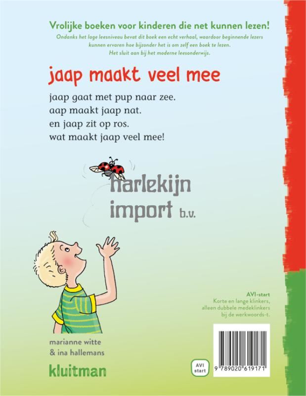 In de nieuwe Kluitman-serie lees lees lees kunnen kinderen na drie weken leesonderwijs al hun eerste boek lezen. Vaak is AVI Start nog te moeilijk, maar met deze serie kunnen ze toch al hun eerste leesmeters maken. De auteurs zijn erin geslaagd om op dit lage leesniveau toch grappige, spannende en boeiende verhalen te schrijven. Zo ervaren beginnende lezers al na een paar weken leesonderwijs hoe leuk lezen is. Lees lees lees sluit perfect aan bij alle gangbare leesmethodes. De serie kent drie niveaus, waarbij de betreffende leesmoeilijkheden aansluiten bij de toenemende leesvaardigheid. Jaap is omringd door allerlei dieren. Elke dag is weer een nieuw avontuur!