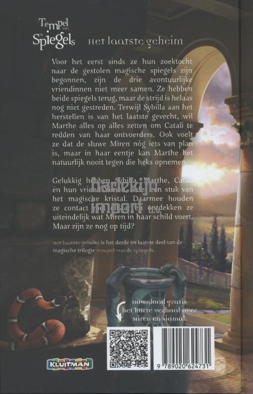 Het laatste geheim is het derde deel in de trilogie over de Tempel van de Spiegels. Het avontuur gaat verder voor de drie vriendinnen Sybilla, Marthe en CatalĂ. De Zonnespiegel is teruggehaald uit de mijnen van Bythinia, maar CatalĂ is spoorloos verdwenen. Miren wil nog steeds wraak en ze heeft al laten zien dat ze zich door tegenslag niet laat stoppen. De vier vriendinnen worden gescheiden, en moeten ieder hun eigen strijd leveren. Pas als ze hun magische krachten weer kunnen bundelen, zijn ze klaar voor de laatste confrontatie met Miren.