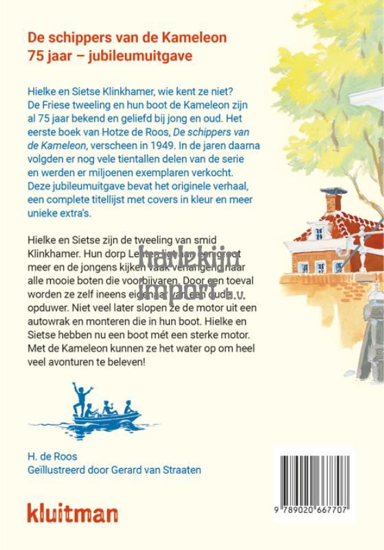 In de zomer van 2024 is het 75 jaar geleden dat de eerste uitgave van De schippers van de Kameleon verscheen. Wie had toen kunnen bedenken dat de Friese tweeling Sietse en Hielke Klinkhamer zó bekend en succesvol zouden worden? Nog altijd heeft de serie veel fans en lezers. Om dit bijzondere jubileumjaar te vieren verschijnt De schippers van de Kameleon in een feestelijke uitvoering, met goudfolie op de cover, een voorwoord van een bekende Kameleon-fan en vele andere leuke extra’s in het binnenwerk, zoals een lexicon, weetjes, een quiz en een fotokatern. Een uniek boek voor de echte verzamelaars en nieuwe fans.