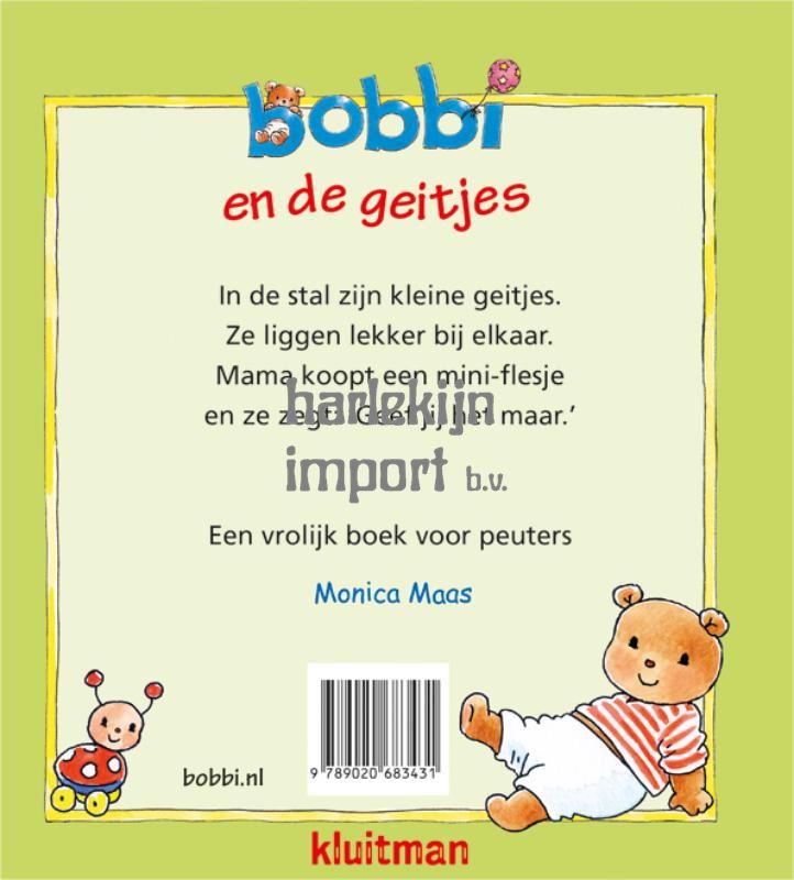 Bobbi gaat op bezoek bij een echte geitenboerderij. Daar zijn lammetjes geboren! Hij mag ze aaien, de fles geven en natuurlijk proeven van de melk en kaas. In de schuur zijn kleine geitjes. Kijk, ze liggen bij elkaar. Mama koopt een mini-flesje en ze zegt: ‘Geef jij het maar.’