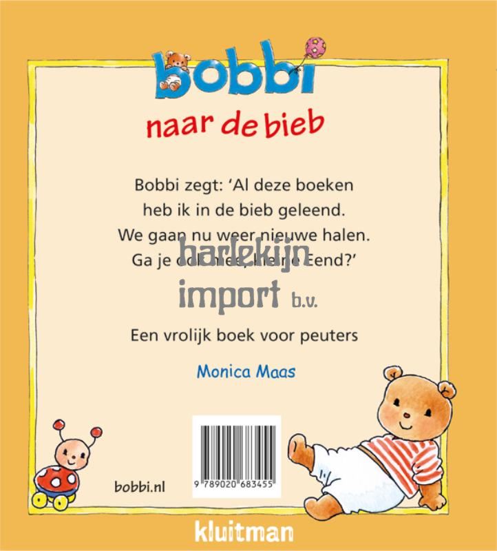 Bobbi gaat naar de bibliotheek toe. Dat is leuk, want er is veel te doen. Boekjes uitzoeken, spelen en er worden natuurlijk spannende verhalen voorgelezen! In de bieb zijn heel veel boeken. Voor iedereen, van groot tot klein. Mama wijst: ‘Daar staan de boeken, die voor alle kinderen zijn.’ Een mevrouw leest een mooi boek voor, aan vijf beertjes bij elkaar. Bobbi gaat er ook bij zitten en luistert er gezellig naar.