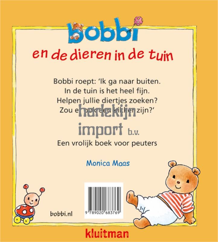 In de tuin is van alles te ontdekken. Dierenvriend Bobbi gaat op onderzoek uit en komt allerlei interessante beestjes tegen, zoals een egeltje, vogels, een spin en een kikker. Een leuk en leerzaam boekje voor alle nieuwsgierige dierenvriendjes! Bobbi vult een bakje water, zodat de egel drinken kan. Hé, wat doet die vogel nou? Hij maakt er een badje van!