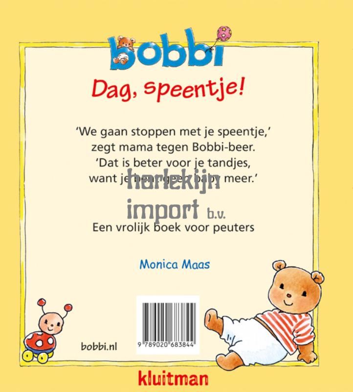 Afscheid nemen van het speentje: de meeste peuters moeten er een keer aan geloven. Dat kan best even een lastig proces zijn. Dit nieuwe Bobbi-boek kan daarbij helpen. Als het Bobbi lukt om te gaan slapen zonder speen, dan kan de lezer het ook! ‘We gaan stoppen met je speentje,’ zegt mama tegen Bobbi-beer. ‘Dat is beter voor je tandjes, want je bent geen baby meer.’