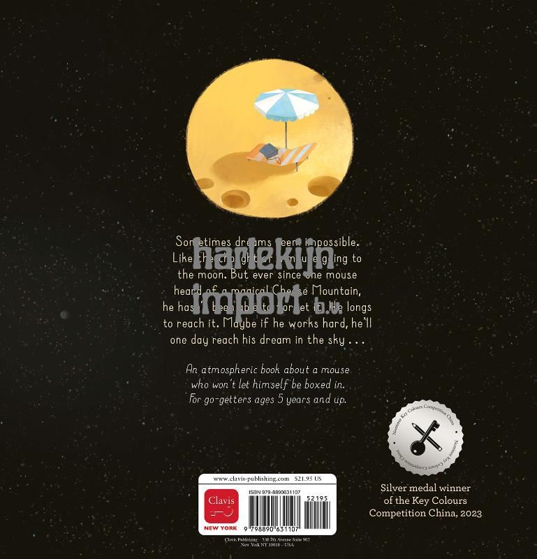 Sometimes dreams seem impossible. Like the thought of a mouse going to the moon. But ever since one mouse heard of a magical Cheese Mountain, he hasn’t been able to forget it. He longs to reach it. Maybe if he works hard, he’ll one day reach his dream in the sky . . . An atmospheric book about a mouse who won’t let himself be boxed in. For go-getters ages 5 years and up.