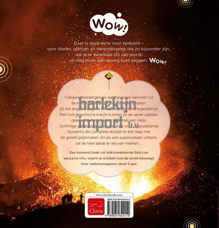 Wow! Daar is deze serie voor bedoeld – voor dieren, planten en verschijnselen die zo bijzonder zijn dat je er helemaal stil van wordt en nog maar één woord kunt zeggen: Wow! Vulkaanuitbarstingen en aardbevingen behoren tot de indrukwekkendste natuurverschijnselen. Ze zijn angstaanjagend en adembenemend tegelijkertijd. Met hun gigantische kracht kunnen ze de aarde optillen, openscheuren en laten trillen als een rietje. Sommige aardbevingen zorgen zelfs voor verwoestende tsunami’s die complete dorpen in één klap met de grond gelijkmaken. En als een supervulkaan uitbarst, zal de hele aarde er iets van merken … Een boeiend boek vol indrukwekkende foto’s en leerzame info, waarin je ontdekt hoe de aarde beweegt. Voor wetenschappers vanaf 5 jaar.