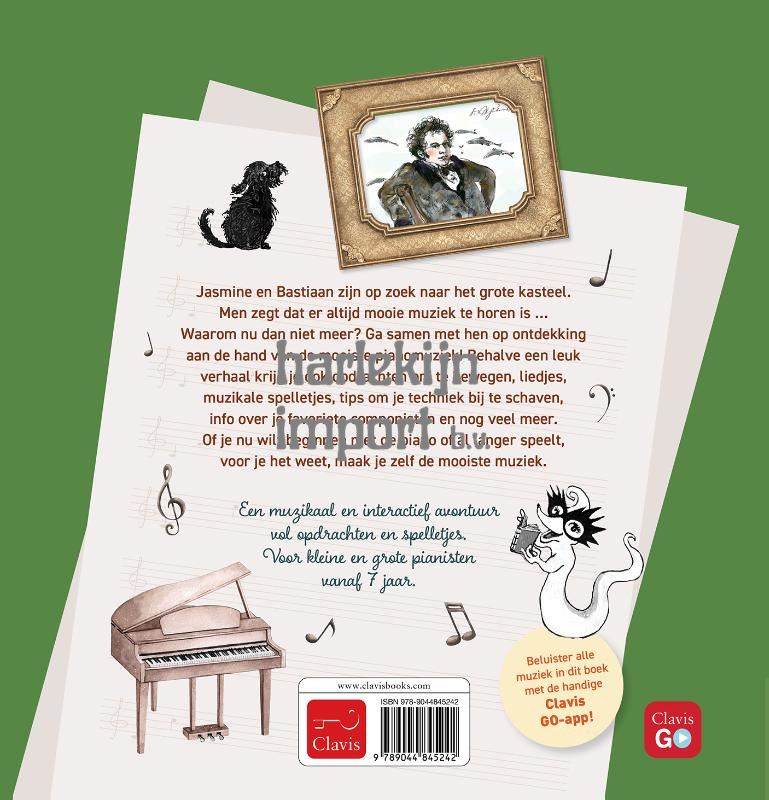 Jasmine en Bastiaan zijn op zoek naar het mooie kasteel. Men zegt dat er altijd mooie muziek te horen is ... Waarom dan nu niet meer? Ga samen met hen op ontdekking aan de hand van de mooiste pianomuziek! Behalve een leuk verhaal krijg je ook opdrachten om te bewegen, liedjes, muzikale spelletjes, tips om je techniek bij te schaven, info over je favoriete componisten en nog veel meer. Of je nu wilt beginnen met de piano of al langer speelt, voor je het weet, maak je zelf de mooiste muziek. Een muzikaal en interactief avontuur vol opdrachten en spelletjes. Voor grote en kleine pianisten vanaf 7 jaar.