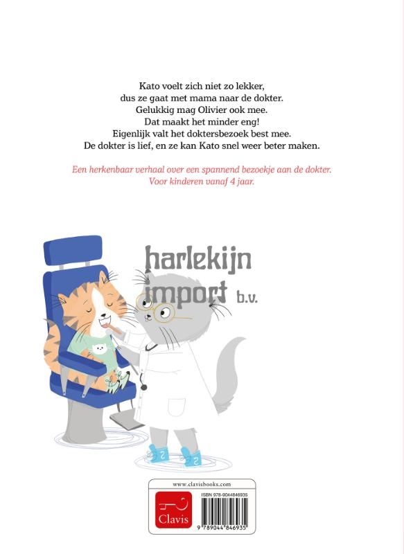 Kato voelt zich niet zo lekker, dus ze gaat met mama naar de dokter. Gelukkig mag Olivier ook mee. Dat maakt het minder eng! Eigenlijk valt het doktersbezoek best mee. De dokter is lief, en ze kan Kato snel weer beter maken. Een herkenbaar verhaal over een spannend bezoekje aan de dokter. Voor kinderen vanaf 4 jaar.