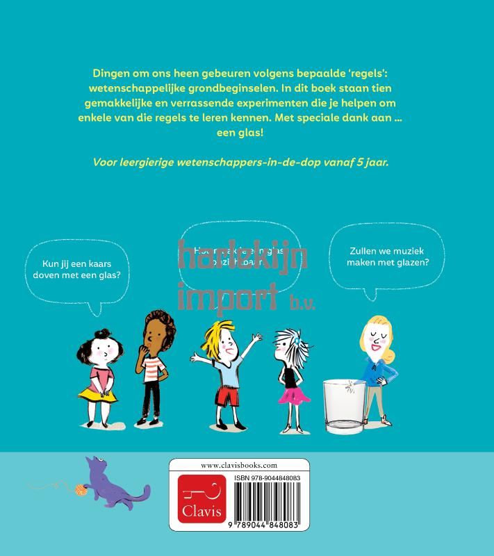 Dingen om ons heen gebeuren volgens bepaalde ‘regels’: wetenschappelijke grondbeginselen. In dit boek staan tien gemakkelijke en verrassende experimenten die je helpen om enkele van die regels te leren kennen. Met speciale dank aan … een glas! Voor leergierige wetenschappers-in-de-dop vanaf 5 jaar.