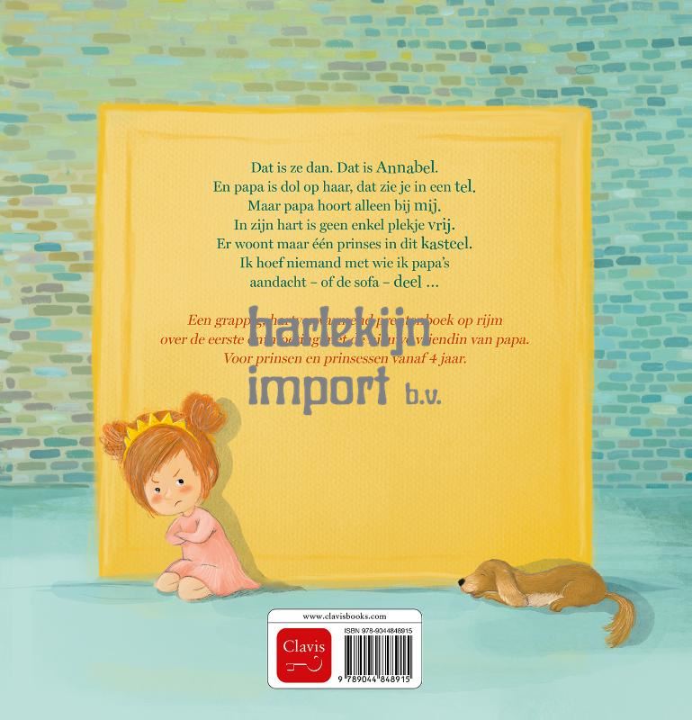 Dat is ze dan. Dat is Annabel. En papa is dol op haar, dat zie je in een tel. Maar papa hoort alleen bij mij. In zijn hart is geen enkel plekje vrij. Er woont maar één prinses in dit kasteel. Ik hoef niemand met wie ik papa’s aandacht – of de sofa – deel … Een grappig, hartverwarmend prentenboek op rijm over de eerste ontmoeting met de nieuwe vriendin van papa. Voor prinsen en prinsessen vanaf 5 jaar.