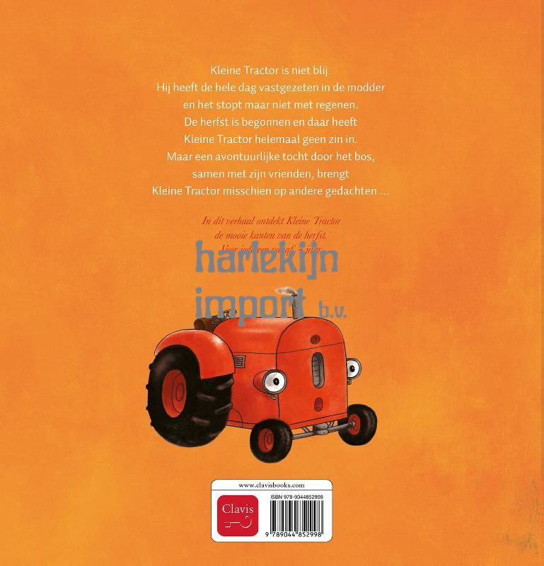 Kleine Tractor is niet blij. Hij heeft de hele dag vastgezeten in de modder en het stopt maar niet met regenen. De herfst is begonnen en daar heeft Kleine Tractor helemaal geen zin in. Maar een avontuurlijke tocht door het bos, samen met zijn vrienden, brengt Kleine Tractor misschien op andere gedachten … In dit verhaal ontdekt Kleine Tractor de mooie kanten van de herfst. Voor iedereen vanaf 4 jaar.